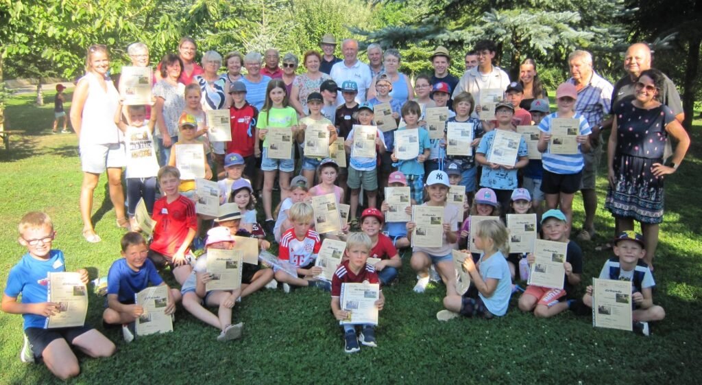 Zum Schluss der Veranstaltung gab es eine große Siegerehrung mit Urkunde und Gummibärchen für jedes Kind. Annemarie Forster, die langjährige Leiterin des Ferienprogramms in Mengkofen, freute sich über das Engagement des Vereins. Die Kinder bestätigten lautstark, dass man auch ohne Handy, Tablet und