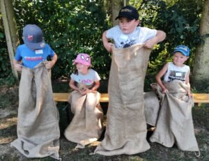 Alle Mädchen und Jungen waren mit großer Begeisterung beim Sackhüpfen, Dosenwerfen, Seilhüpfen und vielen weiteren, oft schon vergessenen, Kinderspielen dabei.
