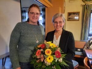 Anschließend wurden die Neuigkeiten aus der Nachbarschaftshilfe vorgestellt. Nachdem Anke Kühnert ihr Amt als verantwortliche Fachkraft der Nachbarschaftshilfe Ende letzten Jahres niedergelegt hat, darf sich die wohl größte Sparte des Vereins auf Elisabeth Bude und Regina Steubl als Führungsteam freuen. Als Willkommensgruß wurden Blumen überreicht.