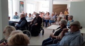 Für die Gruppe 2 stellte zwischenzeitlich der Vorsitzende des Vereins Bürger für Bürger, Richard Baumgartner, im Gemeinschaftsraum von Haus 1 den Verein vor. Baumgartner ging dabei besonders auf die Leistungen im Rahmen der Nachbarschaftshilfe ein. Hier leisten die ehrenamtlichen Helfer nicht nur wertvolle Dienst für Pflegebedürftige zur Unterstützung im Alltag, sondern sorgen auch für stundenweise Entlastung pflegender Angehöriger. Nach rund 45 Minuten wechselten die beiden Gruppen durch, bevor abschließend die Referenten für eine Fragerunde und auch Einzelgespräche zur Verfügung standen.